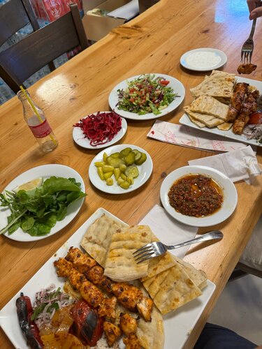 Это реально недорогое место где можно покушать обычную турецкую еду. Сюда приходят местные с семьями и часто многолюдно. Еда вся съедобная. Надо быть готовыми к тому что еда довольно острая - это на мой вкус. Но не отвратительная, в небольших порциях я такое тоже ем. Порции нормальные, вполне хватить наесться. На русском языке никто не разговаривает, ну это и понятно, кафе больше на местных рассчитано, чем на туристов. Убрала 1 звезду за чистоту. Как бы все понятно это местная столовая, но мухи и липкие столы не особо приятные дополнения к еде.