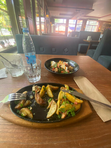Я была тут лет 15 назад , когда это ещё была уни пицца. Сегодня решила заехать по пути и поесть тут, и что я вижу 😁ничего кроме названия не изменилось , цены те же , обслуживание такое же , даже готовят почти так же 😁 Заказала сковородку с куриным филе, картофелем и баклажаном , в итоге так и не нашла ни одного баклажана 😂и привкус масло старого ( будто жарили картошку на старом масле) Салат с баклажанами с хрустящими , мне понравился , съела с удовольствием. Сильно звёзды занижать не стало , всё-таки это семейное кафе , и тут много студентов , за весь заказ у меня вышло 840 рублей ( у меня такая цена обычно за один салат в ресторане 😁 )