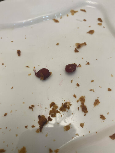 Второй раз беру штрудель с ягодами , вкусно , НО оба раза были косточки вишневые ( чуть зуб не сломала) Сделала замечание в пекарне , попросила быть внимательными , но мне сказали что это не первый такой случай ( люди уже жаловались) и результата нет. Прошу хозяина пекарни обратить на это внимание ! В одном кусочке было две косточки ( смотрите фото)