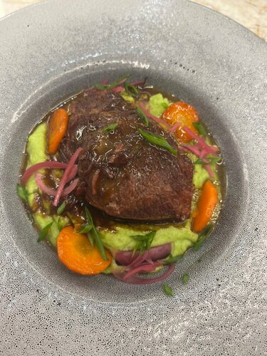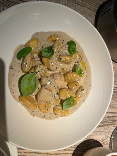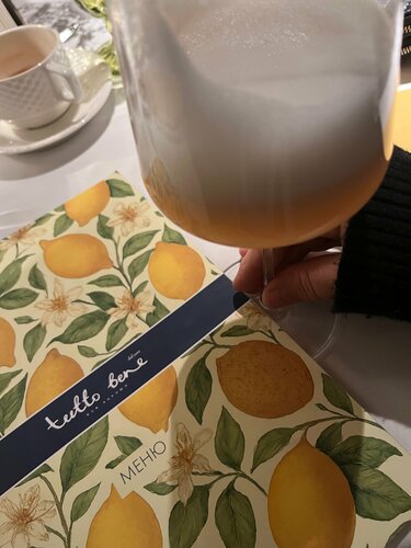 Простите , что не оценила при первом посещении показалось мало света …, НО только опустившись в кресло я его раскусила это что то с чем то и это прекрасно❤️ Здесь режим работы до 6 утра живая музыка вкуснейшая еда кальян на 2 этаже доброжелательные официанты замечающие каждую мелочь ,теперь этот ресторан еще одна любовь к моим любовям , хочется вернуться из за Беллини и панакоты свежая запеченная рыба великолепна 🔥еда огонь карбонара говяжьи хвосты зачетные 🫶
