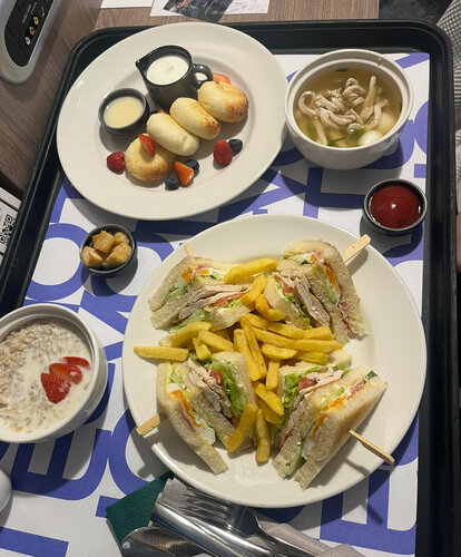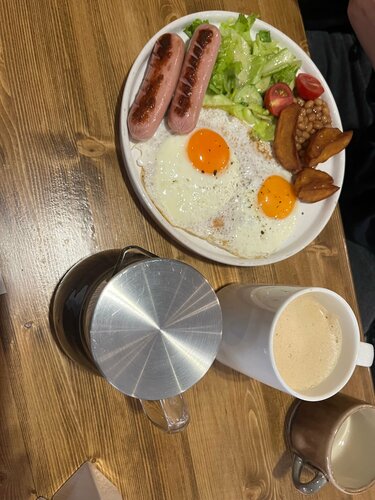 Все очень мило 🌺 Очень милые и приветливые официанты ,можно с питомцем 🤗 Мы пришли с ребенком позавтракать, очень быстро принесли еду 👍все вкусно, все горячее, раф прекрасен 🔥уточнили не хочет ли пить собачка 🐶 пожелали доброго дня когда уходили 🥰 Очень душевая атмосфера🤗 если сидеть у окна , то можно смотреть на Московскую улицу- почти как в Питере на Невский проспект ❤️