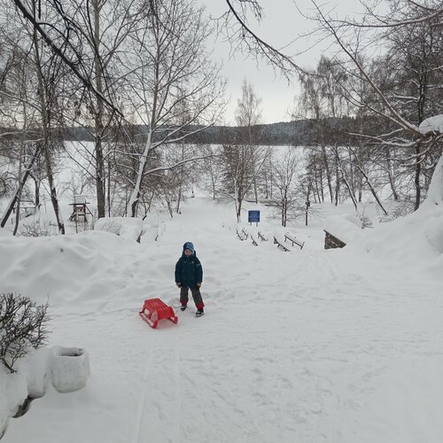 Урал, есть Урал! Природа, конечно! С погодой повезло! Столько снега чистого. Ребенок доволен! Наползался, с горки накатался! В городе такого не найти!