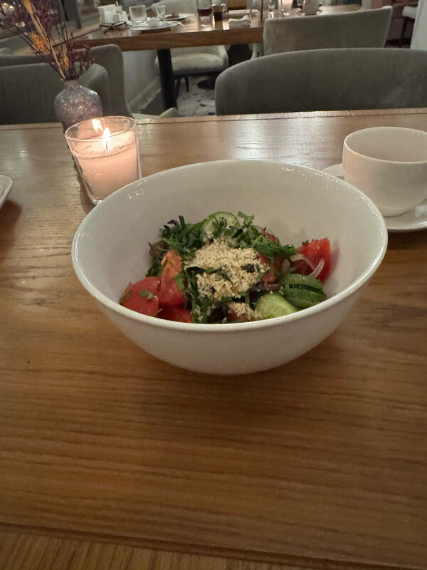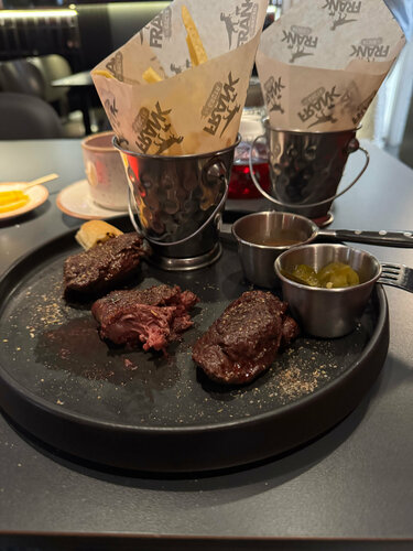 Был 11.09, небольшое помещение (настроено на большее количество клиентов) откровенно немного тесноватое. 👎 цены завышены относительно аналогичных заведений. Обслуживание быстрое, персонал внимательный и вежливый, что заказывал вкусно (салат, стейк) из того что не понравилось - фруктовый чай («пустоват» по вкусу), громкая музыка! 🤷‍♂️ В целом впечатление двоякое, не уверен зайду ли я еще раз…
