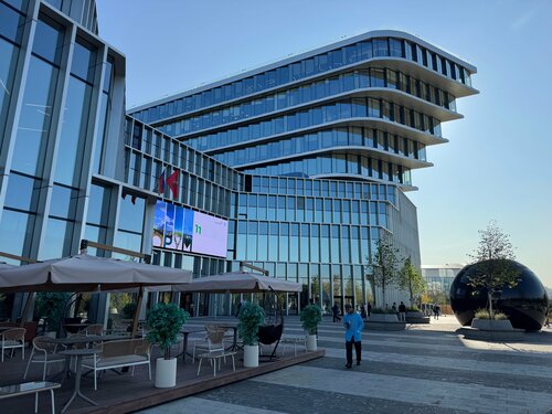 Большой комплекс, удобно расположен, проходило корпоративное мероприятие. Современное открытое пространство, большие удобные залы, на первом этаже есть кафе, магазины, 👍😁