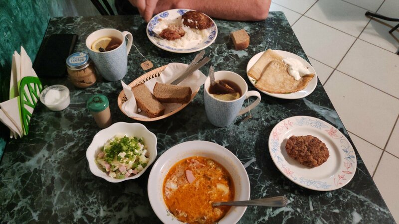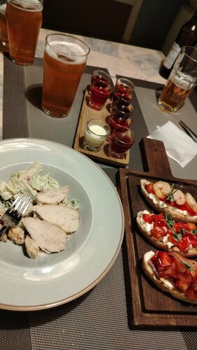 Всё вкусно, порции норм, персонал хорош, расположение тоже отличное. Зарядил телефон на стойке администратора. Всё около дела, спасибо. Волга у входа с героями фильма - класс!