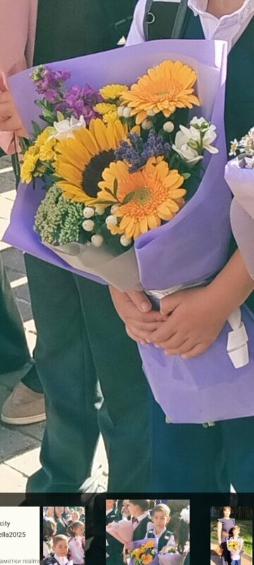 Накануне 1 сентября оформила здесь заказ на букет! Приятная девушка предложила на выбор цветы для композиции. С утра перед линейкой забрали букет без очереди, все цветы свежие, учли все пожелания!