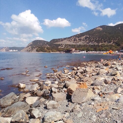 Сам по себе пляж неплохой. Но заход в воду и выход из нее-это ужасное испытание для всех,без исключения...без тапочек там нечего делать,камни острые и скользкие . Причем на всех пляжах,и на центральном и у дельфинария...у дельфинария так просто разруха...