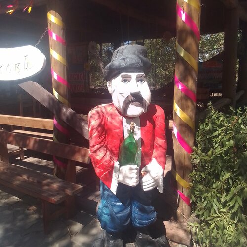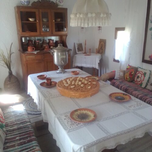 Место очень чудесное,можно ходить целый день...интересные избы,есть и лекаря и невесты и священника и еще порядка 30 изб. Есть ,где покушать,мы ели борщ,шашлык,галушки....вкусно очень. Виды на море потрясающие