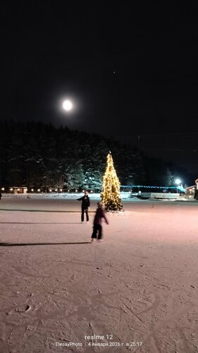 Ездили на каток с ребёнком. Уже не первый раз и не первый год. База хорошая!!! Вечером красивые огоньки, прокат коньков, туалет, кафе, скамейки для переодевания обуви в тёплом помещении. Из минусов, на катке, 04.01.26, на льду: есть выбоины, куда если попадёшь, то можно упасть и многие падают. Считаю, что если берут деньги за каток, то нужно и следить за его содержанием. Музыка играет классическая, приятная, но уже надоела из года в год одно и тоже, и ее плохо слышно, хочется повеселее и по громче, а то грустно как то