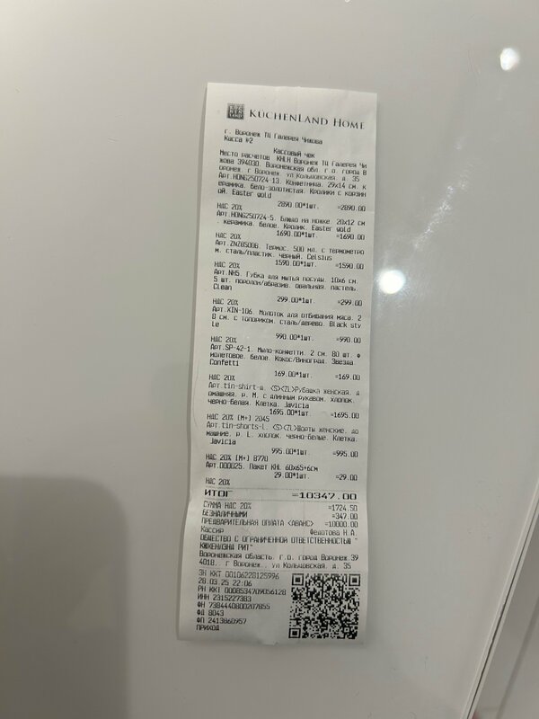 Я был весьма разочарован своим посещением магазина Kuchenland, особенно взаимодействием с кассиром по имени Елена. Пришли мы всего за 30 минут до закрытия, и, честно говоря, ожидали нормального обслуживания, как это должно быть в любом приличном магазине. Но, к сожалению, Елена явно не была готова помочь нам – она встретила нас с явным недовольством и злостью, словно мы чем-то её обидели своим появлением в таком позднем часу. Когда мы попытались получить более подробную информацию о некоторых товарах, мы столкнулись с явным пренебрежением и недовольством. Вместо того чтобы оказать нам хоть какую-то помощь, она только отмахнулась с раздражением, с хамским выражением лица она заявила, что магазин скоро закрывается, и совершенно не желала обсуждать возможность покупки товара и добавила, что у вас есть 10 минут до закрытия магазина. Такое поведение действительно шокировало, ведь в таком престижном магазине мы ожидали совершенно другого уровня обслуживания. Кажется, у неё была одна цель — быстрее закрыть кассу, не обращая внимания на нас, как на покупателей. Несмотря на то, что мы пришли в это время, хотелось бы получить хотя бы каплю уважения, но вместо этого нас встретила полностью обратная реакция. Такое поведение просто недопустимо. Кассир, как лицо магазина, должен быть вежливым и отзывчивым, а не проявлять агрессию к покупателям. Неужели вы, дорогие сотрудники Kuchenland, хотите, чтобы ваши клиенты чувствовали себя некомфортно? Я был сильно расстроен этой ситуацией, и, честно говоря, больше не хочу возвращаться в этот магазин, если подобное отношение к клиентам будет продолжаться. Надеюсь, кто-то из руководства примет меры и проведет дополнительные тренинги для персонала, ведь клиентский сервис — это то, что важно в любой сфере бизнеса. Несмотря на все нюансы обслуживания, мы совершили покупку в вашем магазине.(чек о приобретении товара прилагается ниже)