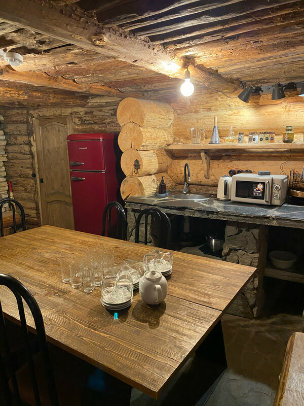 Интересное место . Продуманный ландшафт, несколько приятных «локаций» наш «испанский» дворик очень порадовал - достойным убранством уединеной мангальной зоной сложенной из узких плиток известняка закрытой от ветра и вход в саму жилую зону.В холле стол и чугунная печь с дровами , мягко переходит в небольшую но уютную кухоньку с кованной вытяжкой. Дверь в сан/узел с ванной и стилизованой испанской раковиной.Просторной спальной и гостиной обладающими удивительно круглыми и полукруглыми окнами. В номере есть все для уютного проживания: чайник ,микроволновка , плитка и холодильник в стиле «идальго».Рядом эко ферма где можно приобрести отличное козье молоко , посмотреть уток , кур,барашка и козочек . Конный клуб , большое Генеральское озеро. На территории таежного живет страус и три кошки :Зайка, Шапочка и Звезда. Можно заказать дом с баней и сибирским чаном . Есть два искуственных водоема с рыбой.