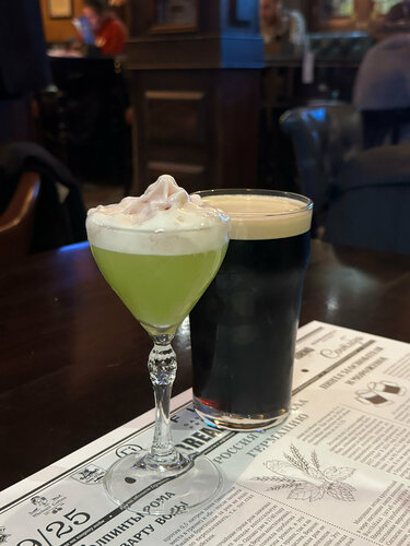 Наш отличный выбор места для отдыха после тяжелого перелёта и шикарного ужина 02.09.25 ✈️ Хочется отметить в первую очередь богатый, шикарный интерьер паба, который нам , как истинным любителям Ирландии показался просто невероятным 🙌🏼 Интересные коктейли в меню с необычными сочетаниями ингредиентов так же не оставили равнодушными. Не могу однако сказать , что порции нам показались большими. После 2х основных блюд пришлось дозаказывать ещё. А вот качество - перфект, особенно запечёная рыба. Я как любитель морепродуктов была в восторге. По обслуживанию - очень импонировал молодой человек. Было очень приятно что официант знает своё дело) Спасибо за прекрасно проведённый вечер! Как только душа захочет Ирландии, заедем именно сюда 😉 10/10