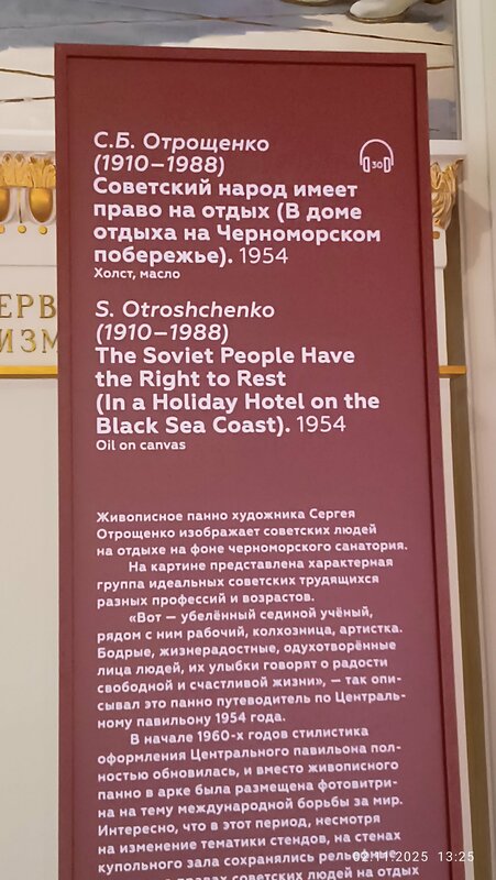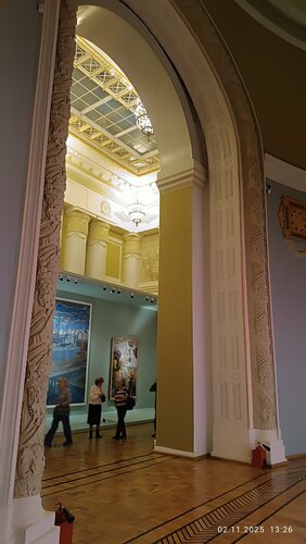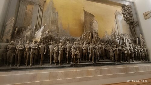 Очень интересная выставка "Образ Москвы" это возможность полюбоваться не только картинами, но и интерьерами центрального павильона ВДНХ. Удивил гардероб без гардеробщика, но это позволяет не скапливать очередь на входе. Небольшая толкучка возникает при входе из за достаточно небольшого пространства между кассами и проходом в гардероб и на саму выставку. Есть сувенирный отдел, отдел кофе и сладостей. Есть возможность взять платный аудиогид. Сама выставка интересная, возможность увидеть как менялась Москва, как по разному видели ее художники, скульпторы.