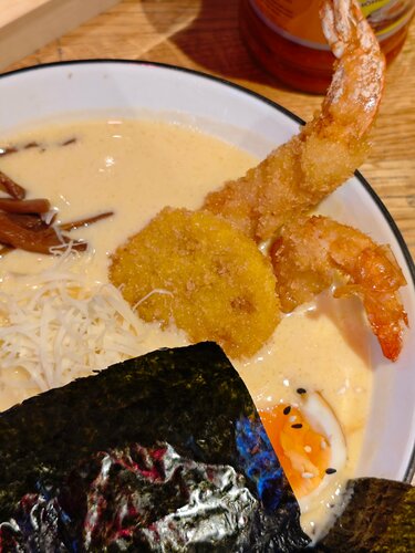 Очень вкусно, пришли сюда по рекомендации. Сильно впечатлил сырный рамен, у бульона насыщенный сырно-сливочный вкус. Наполнение порадовало. Таких больших спринг роллов никогда не видел. Из минусов долго выносят напитки🤔 Мы успели все съесть, оплатить счёт, посетить уборную и только потом нам выдали кофе.