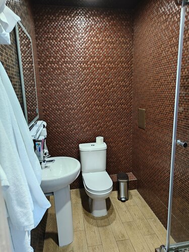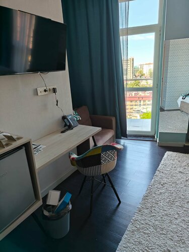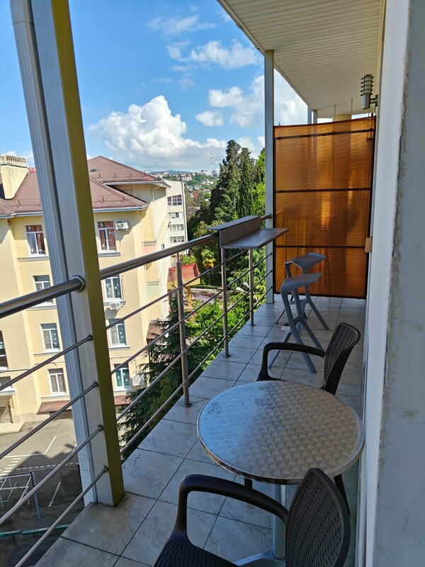 Небольшой уютный отель в центре, район Светлана, недалеко от Перекрестка. Очень удачно расположен, пешком можно дойти до набережной, недалеко дендрарий, парки и все прелести Сочи. На такси тоже удобно подъехать. Для прибывающих на автомобиле машину можно оставлять на улице, где расположен отель, правда места наверное не всегда бывают ( были в конце апреля, улица почти всегда была заставлена). Уютные номера, у нас был комфорт плюс с балконом, большой балкон с видом на город и море, со столиком, стульями, и даже барной стойкой. Завтраки были включены, хорошие, нам хватало. Плюс к шведскому столу можно заказать одно блюдо из меню. Проживающим в отеле скидки в кафе 10 процентов. Часто обедали или ужинали там же. Меню небольшое, но всё вкусно. Спа зона на восьмом этаже, уютная, ходили на спа процедуры, остались довольны. Можно просто посетить спа (хамам, бассейн и зона с шезлонгами на крыше), непонятно только, почему сюда же не входит сауна, хотя она есть на этой же территории. Если вы поживаете в полулюксе и люксе, спа можно посещать бесплатно. Персонал вежливый и отзывчивый, просили во время проживания халаты, прочистить слив в душе, всё делалось быстро. Не очень понравилась концепция с зонтиками (несколько дней были дождливыми). Зонты в отеле есть, но надо внести депозит 2 тысячи, и непременно наличными (которые не всегда есть). Почему нельзя списать депозит с карты и вернуть его потом или просто записать зонт на номер, в котором проживаешь, непонятно. В остальном впечатления только хорошие, надеюсь вернуться сюда ещё.