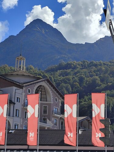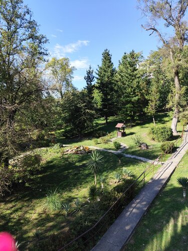 В самом санатории не жили, приходили на обед, шведский стол. 599 р/чел., зашли из любопытства больше, но санаторий очень понравился! Во-первых, неплохой обед, большой выбор блюд на любой вкус, видно, что свежее всё, хотя, учитывая, ско6 здесь людей - не залежится. Со столов периодически работники забирают грязную посуду, в зале чисто. Во-вторых, на стойке информации нам дали листовку с картой территории и предложили прогуляться. Мы не пожалели! Чистые дорожки, панорамные лифты, а сколько деревьев! Мини-дендрарий)) многие растения подписаны. Есть магазинчики, лавочки, качели, детская площадка. Даже пруд с рыбками, но вода в нем зелёная, не знаю, наверное это не полезно рыбам? На территории увидели жилые корпуса, бассейн, мед.центр. Нам так понравилось, что решили как-нибудь обязательно сюда приехать именно в санаторий.