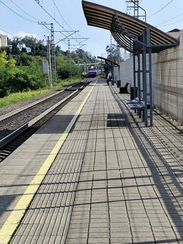 Маленькая станция, но никаких проблем с ней нет, табло читается хорошо, всего 3 пути, не заблудишься. Ласточки ходят часто, и в Сочи, и в аэропорт, и на Красную поляну