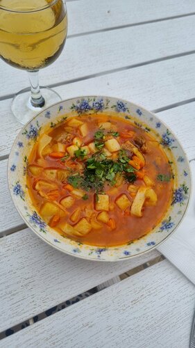 Обедала в кафе при гостинице. Лагман сказали с пылу с жару, только что сготовлен, приносят еле теплый. Попросила разогреть - уменьшился в размере( Лаваш сказали тонкий, принесли толстый, не вкусный. Вино белое сухое домашнее - вкусное.