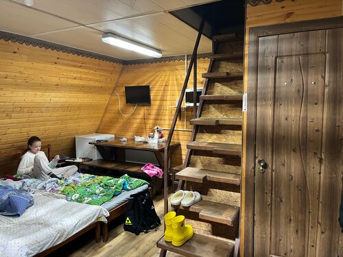 Бронировали 2 домика для проживания участников Праздника Севера учащихся. Из плюсов: относительно недорогое размещение; очень удачное месторасположение для тех, кому нужна Долина уюта - лыжная трасса в 10 минутах неспешной ходьбы; отзывчивый персонал; в номерах тепло, есть микроволновая печь, небольшой холодильник, минимальный набор посуды. Из минусов: отсутствие возможности приготовить еду самостоятельно - решали вопрос заказом готовых завтраков, обедов и ужинов к определенному времени; при полном заселении очень тесно; смежный санузел на весь номер (т.е. на 5 человек), в котором для душа не предусмотрен поддон из-за чего на полу всегда сыро. В соотношении цена-качество приемлемо при непродолжительном путешествии.