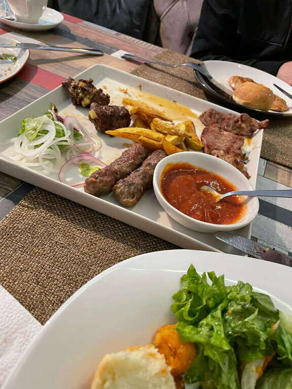Кухня шикарна,заказывали мясо тарелку ассорти,салат сулугуни.мясо нежнейшее, куриная грудка удивила сочностью. Обслуживание-профессиональное.Быстрое, знание кухни отличное. Ожидание заказа- быстро. Официант Паша-спасибо, не навязчивое и внимательное обслуживание.