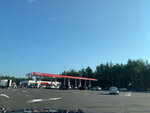 Новый огромный лукойл, много колонок, большой фудкорт внутри, аптека, туалеты кстати именно на этой заправке часто грязные по сравнению даже с лукойлом на другой стороне трассы. Это единственный минус.