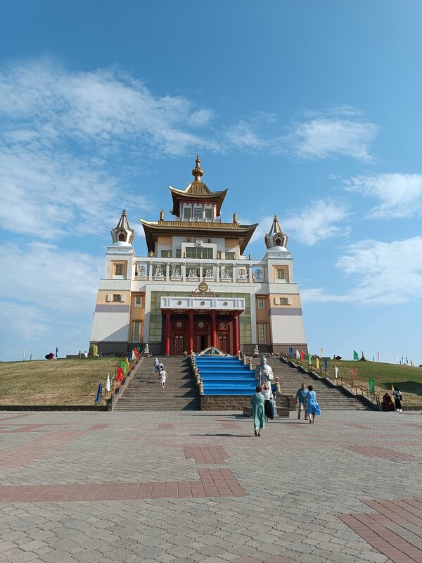 приезжали мимо Элисты, обалдели от такой красоты, даже не знали, что тут такое есть. прошли вокруг храма по часовой стрелке (подсказал монах) , внутрь заходить не стали, т.к начиналась служба, но вообще заходить на 1-2 этажи можно, если хотите просто посмотреть. впечатления потрясающие, обязательно к посещению, в России такого больше нигде не увидите.