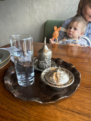 Прекрасное расположение, есть рядом парковка. Детская комната, отдельная банкетная зона. Чисто, работают быстро. Сразу дали детский стульчик. Про акции рассказали без напоминания. Есть много национальных блюд. Кофе Турецкий, много горячего. Ценник выше среднего. Но оправдан!
