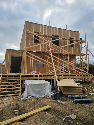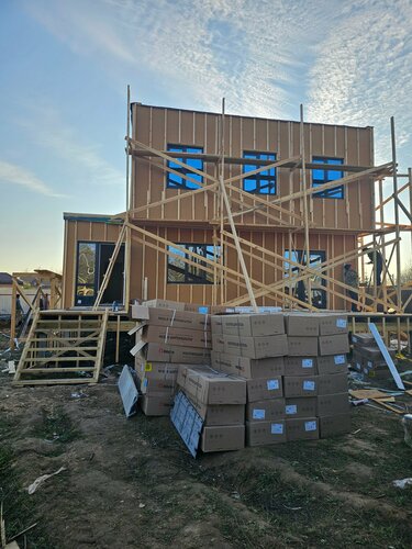 Мы очень рады, что когда то случайно забрели на выставку домов, и там встретили проект нашего, уже реально стоящего дома! Хотя после встречи долго метались, смотрели, в итоге вернулись к нашему "квадратику". Нас притянуло к нему с неведомой силой и скоростью, и мы успели все согласовать с менеджером Мариной (ей отдельное спасибо, благодарность и лучики тепла за помощь, советы и отличную работу), одобрить ипотеку (благодаря ипотечному специалисту Екатерине, которая буквально всё сделала за нас), съездить в отпуск, выйти на сделку и начать строительство наверное месяца за полтора в сумме) По стройке тоже все шло как по маслу, забили сваи, и основное строительство началось 17 сентября. Бригада работала у нас отличная, замечание за всю стройку было только одно (какая то доска мужу не понравилась, ребята тут же ее заменили). Работали быстро, слаженно, даже соседи отметили, что ребята были максимально настроены на результат. Стройку завершили уже 25 октября. Сейчас заканчиваем работы по инженерке, и начинаем обустройство. Конечно пока не поживём, сложно оценить дом на 100%, время покажет, но предварительно - мы в восторге! А если что-то и вылезет, мы уверены, что все решится. Мы считаем, что нам очень повезло с подрядчиком, и конечно же советуем Дбрус, если вы хотите красивый, современный и теплый СВОЙ дом!