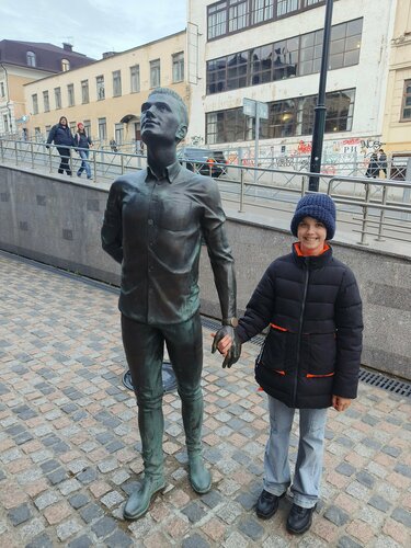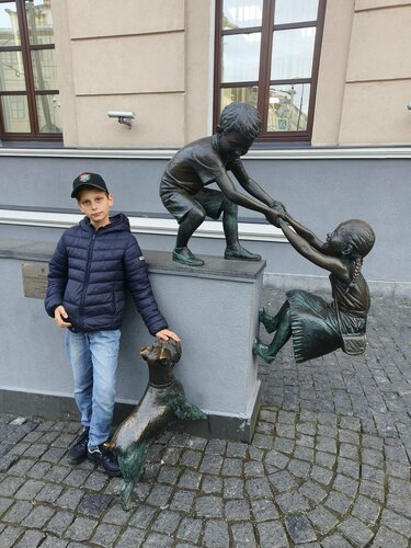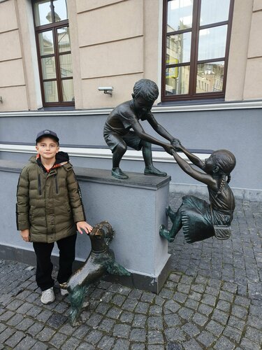 Очень милая композиция. Найти очень просто, хоть и не на главной пешеходной улице, просто свернуть с Баумана на 50 метров. Здорово, что есть таблички с информацией об авторе, а также приятно, что эту скульптуру бережно охраняют - когда к ней подошла группа детей, из ближайшего офиса тут же вышел мужчина и проконтролировал, что никто не занимается вандализмом! Считаю, что в городах должно быть больше таких малых форм социальной направленности и просто милых!