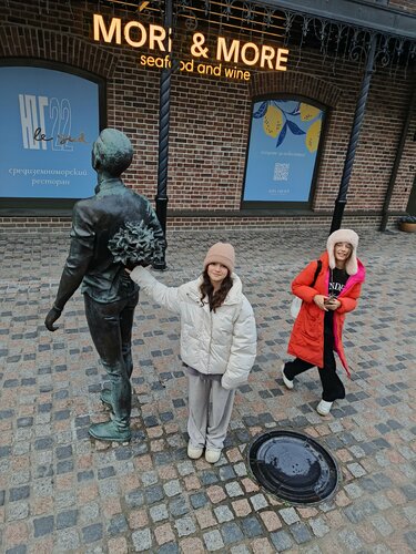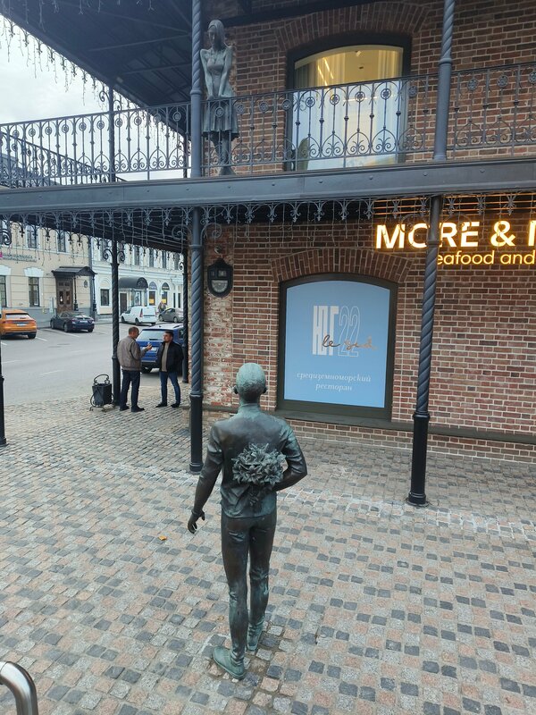 Настоящее открытие для меня, хоть и не в первый раз в Казани! Находится композиция не в самом распространенном и многолюдном месте, но найти ее очень просто - свернуть от Бауманки на 50 метров до Профсоюзной, и прямо на светофоре наткнуться на бронзового парня с букетом за спиной. Его удобно взять за руку, чтобы романтично сфотографироваться) а вот к современной Джульетте не удалось так близко подобраться, осталось любоваться снизу. Но все равно композиция очень милая, романтичная, трогающая и заставляющая подумать - как быстротечна молодость, как стоит дорожить любовью и вообще тёплыми человеческими отношениями, как всё-таки нужно ухаживать, добиваться, никуда это из современного мира не делось, это ценности вне времени! Спасибо за такое открытие для меня в Казани! Побольше скульптурных малых форм в городах!
