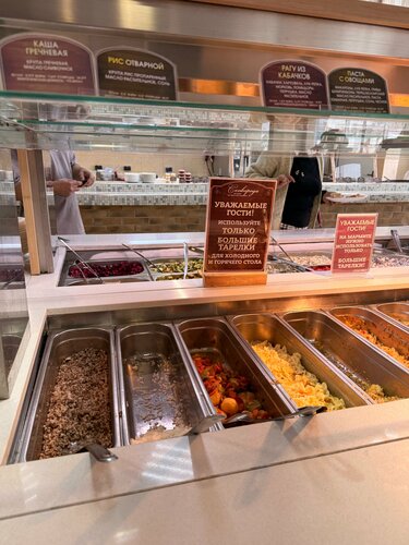 Столовая, соответствующий формат. Никакой местной кухни здесь нет. Девушки на раздаче работают без перчаток, касаются тарелок изнутри своими пальцами, потом чешет лицо, и берет следующую тарелку. Это мерзко. На замечание - почему Вы работаете без перчаток, говорят, я же не руками еду насыпаю… Часть еды стоит для самообслуживания. Ничем не закрывается. Кто туда залезет - не понятно. Взяли котлету - оказалась не прожаренная до конца. Цены приличные. 59 руб за 100гр, если это гарнир, выходит около 400 руб. Супы по 150-180 руб. В общем, последний раз здесь. Абсолютно не рекомендую.