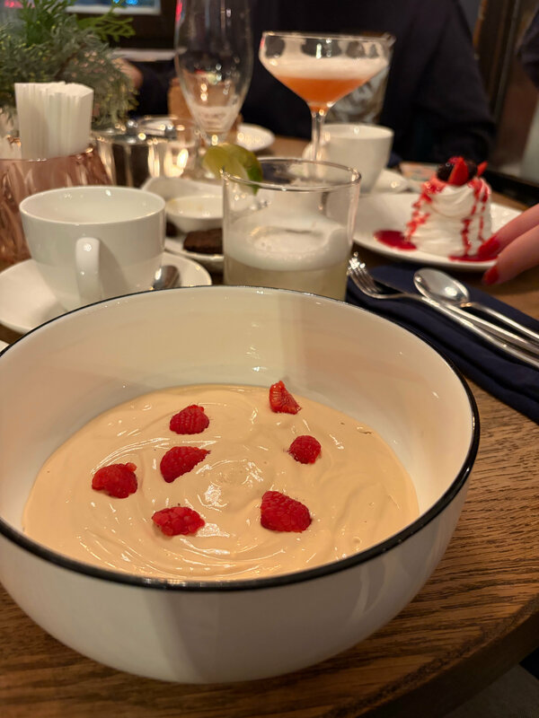 просто потрясающе! персонал дружелюбный и веселый, нам все подсказали и помогли выбрать блюда и напитки. все было невероятно вкусно! интерьер классный, елка красивая, цены за такую еду более чем приемлемые — на пять человек с алкоголем и закусками и десертами вышло 15к. перепробовали пять разных десертов, они все шикарные. нас еще и угостили чем-то йогуртовым на прощание. всей компанией остались в таком восторге, что решили заехать в Ярославль еще раз ради этого рестика